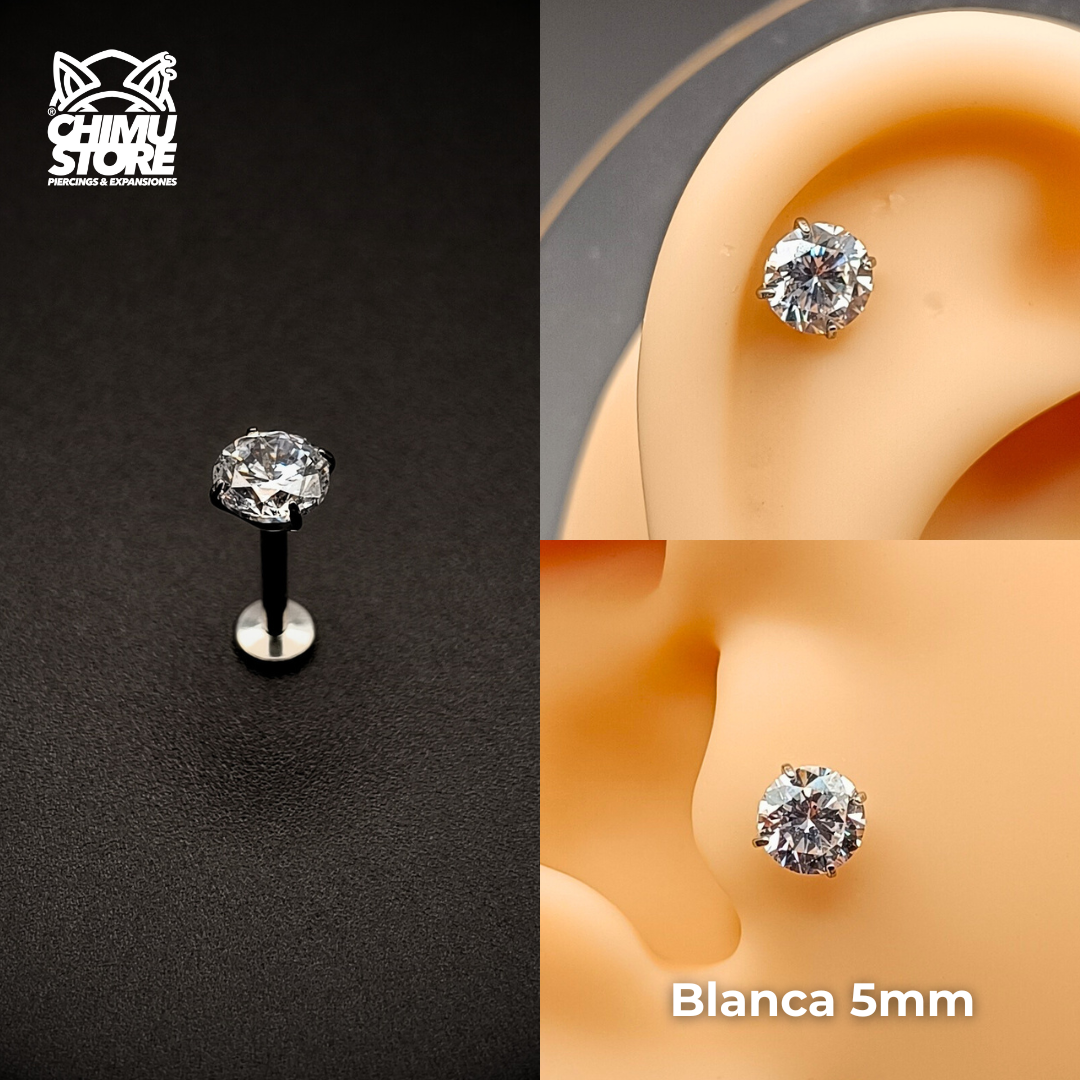 NEW Labret (HC) Titanio G23 - Prong Set Zirconia 5mm M002 (1,2mm) (16G)